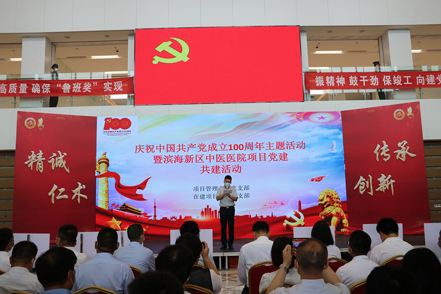 2021年6月29日,在天津三建公司總承包濱海中醫(yī)醫(yī)院項目,天津三建公司濱海中醫(yī)醫(yī)院項目黨支部與天津濱海建投項目管理有限公司建設(shè)管理分公司黨支部共同開展“慶祝中國共產(chǎn)黨成立100周年”黨建主題活動。