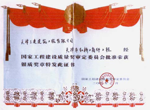 工程概況:天津市紅橋區(qū)工商銀行大廈坐落于紅橋區(qū)大豐路西側(cè)??偨ㄖ娣e為25763㎡?;由?0m,地下二層,地上15層,一至三層為裙房,四至十五層為主樓,全高88.8m,為紅橋區(qū)第一幢高層建筑。該工程基坑采用噴粉帷幕止水,鋼筋砼灌注樁擋土,基礎(chǔ)采用樁筏基礎(chǔ)。裙房為框架結(jié)構(gòu)。高層主樓筒中筒剪力墻結(jié)構(gòu),外墻筒厚400mm,內(nèi)墻筒厚300mm,樓板為現(xiàn)澆雙向密肋模殼結(jié)構(gòu)。1995年4月開工,1998年6月竣工。榮獲國家優(yōu)質(zhì)工程銀質(zhì)獎(jiǎng)?wù)隆?/span>