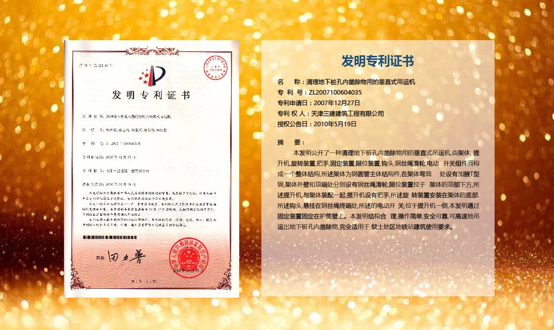 2010清理地下樁孔內(nèi)鑿除物用的垂直吊運(yùn)機(jī)
