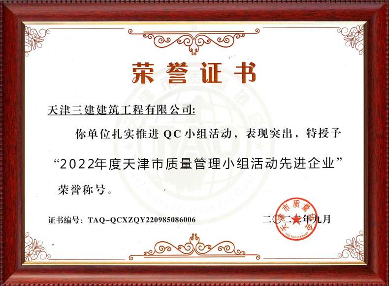 2022 天津市質(zhì)量管理小組活動(dòng)先進(jìn)單位